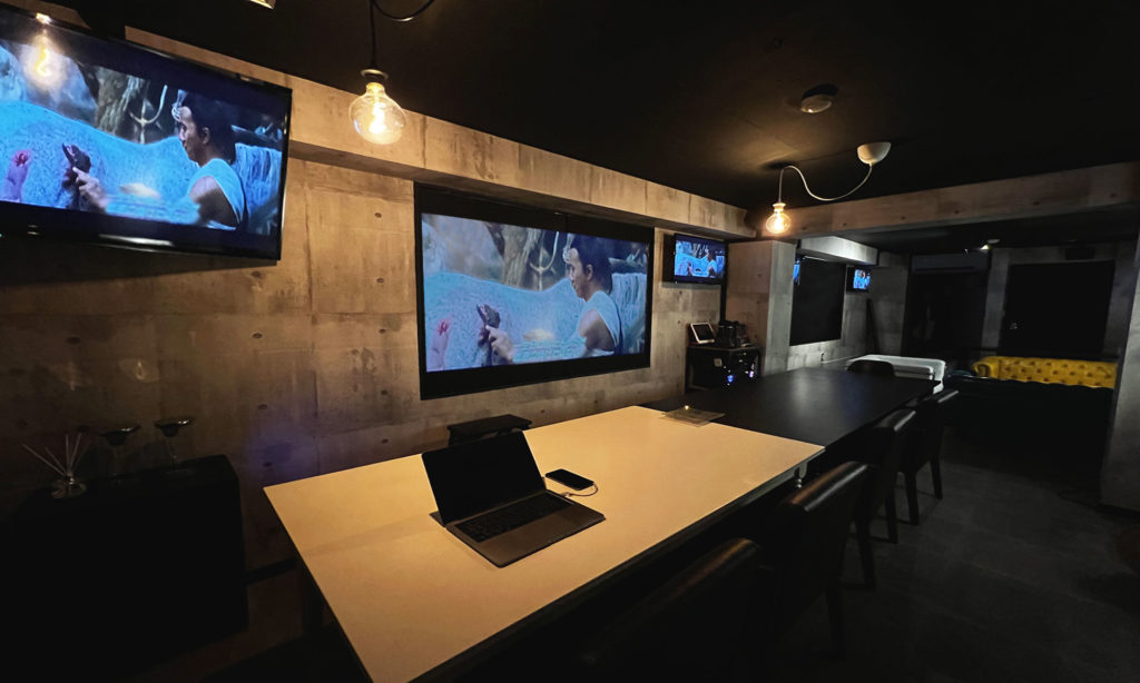 窓を塞いだ部分をモニターを増やすことで、空間としての明るさや華やかさを演出。